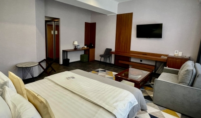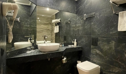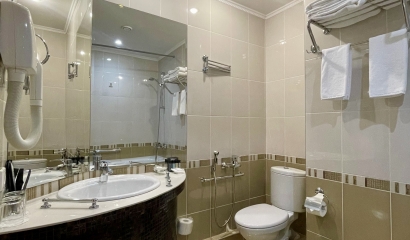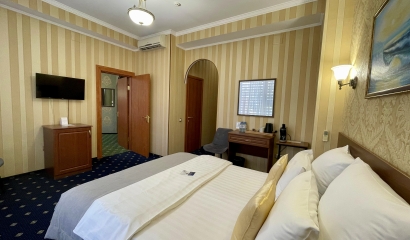 Достойный отель, просторный ресепшен, очень доброжелательный персонал. Очень чисто, добротно и номера, и общие пространства. Ресторан на 4 этаже отличный, завтраки разнообразные, всё вкусно. Есть тренажерный зал и салон красоты. Благодарим за отдых!