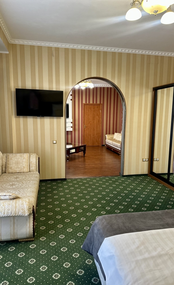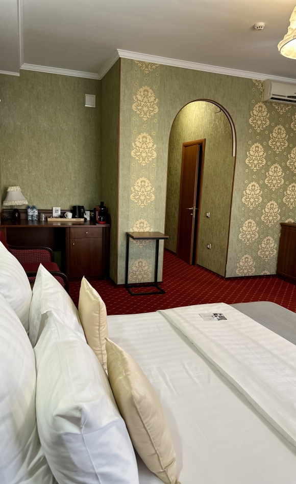 Номер категории «Сюит» — идеальное сочетание элегантности и уюта, созданное для тех, кто ценит истинный комфорт и изысканный стиль.